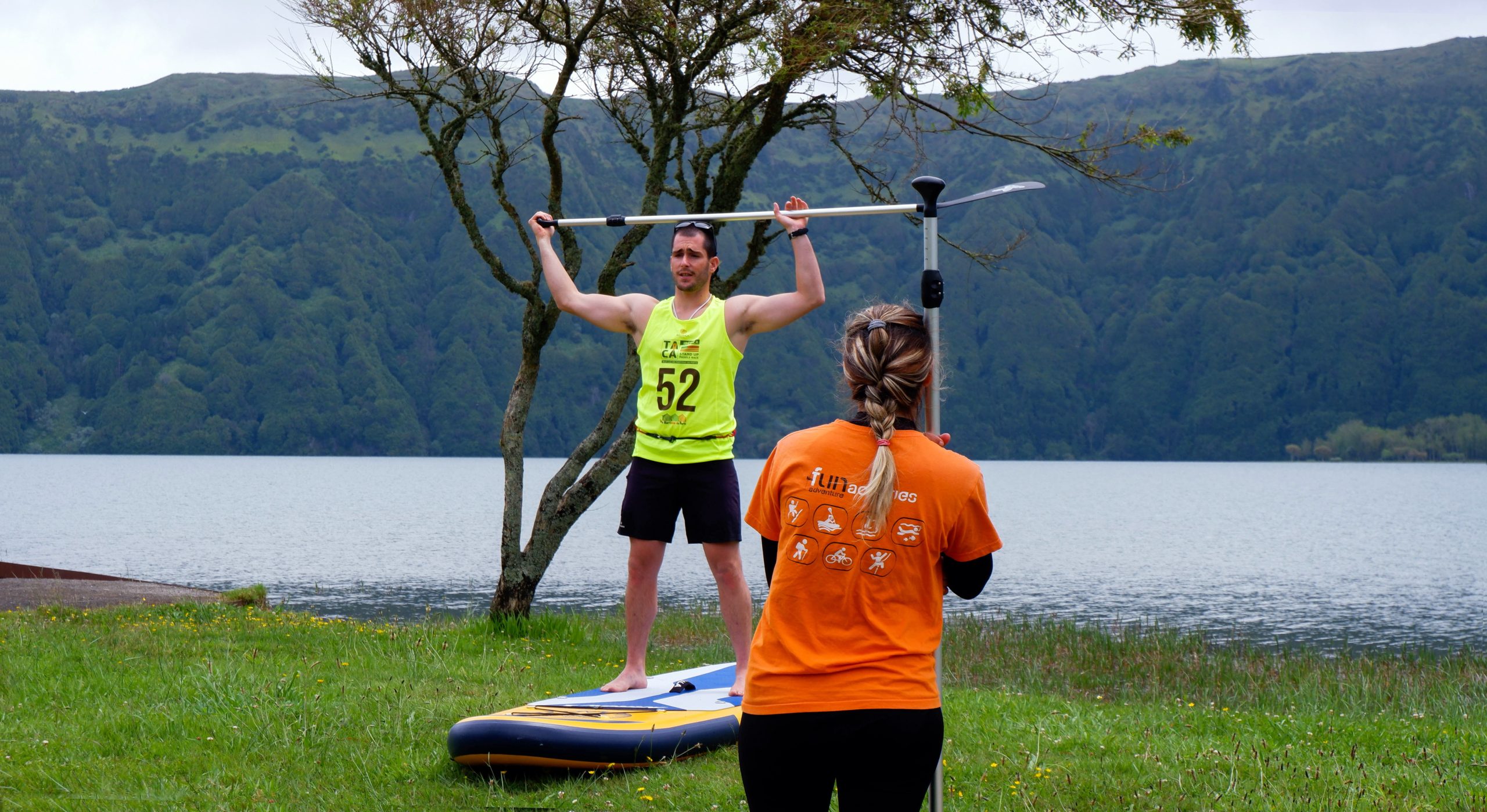 Nesta atividade de Stand-Up Paddle Try Out irá aprender a usar a sua prancha e ao mesmo tempo explorar a Lagoa das Sete Cidades com o seu instrutor. As águas calmas desta lagoa fazem dela o local ideal para a sua primeira experiência de SUP. As águas calmas desta lagoa fazem dela o local ideal para a sua primeira experiência de SUP. A localização da atividade depende essencialmente das condições meteorológicas atuais.